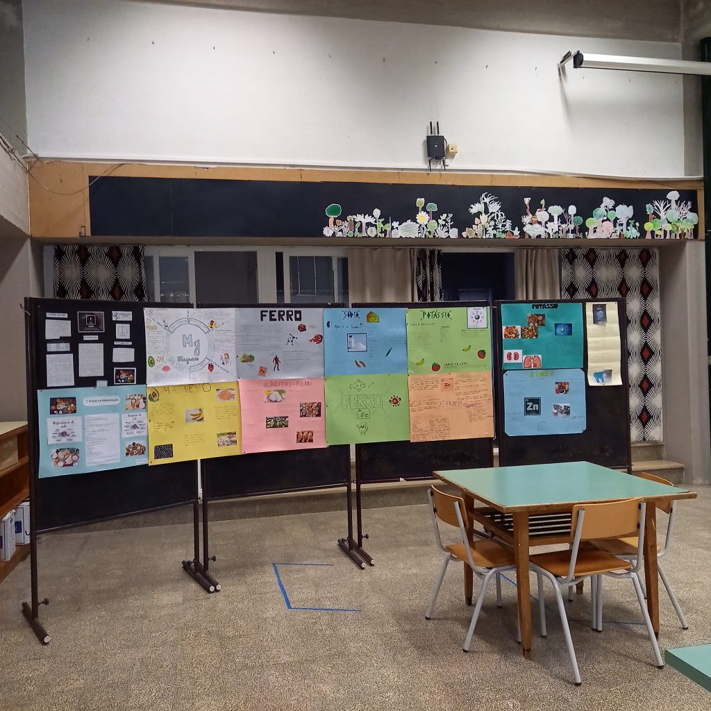 Na quinta-feira, 16 de outubro, foi comemorado o Dia Mundial da Alimentação, envolvendo as disciplinas de Ciências Naturais (2.º ciclo), Ciências Naturais e Físico-química (3.º ciclo) e Projeto PES, e deste modo associando-se à efeméride promovida pelas Nações Unidas desde 1981. As atividades dinamizadas foram produção de pão e elaboração de snacks saudáveis, que alunos das turmas 7ºA e 8ºE prepararam, confecionaram e distribuíram pela comunidade escolar. A maioria da turma 9ºC assistiu a uma sessão (via Teams) sobre Alimentação Equilibrada, promovida pela nutricionista Dra. Sofia Paiva, enquanto alguns alunos dinamizavam uma sessão informativa sobre Análise de Rótulos de Alimentos – quantidade de açúcar e gordura em alimentos, às turmas de 5.º e 6.º anos. Os materiais fornecidos pela nutricionista foram replicados em outras turmas de 9.º ano. De modo transversal, as turmas de 2.º e 3.º Ciclos realizaram trabalhos de grupo sobre diversas temáticas no âmbito da alimentação, os quais foram expostos no pavilhão central para divulgação dos mesmos à comunidade educativa no sentido de sensibilizar a importância de uma alimentação equilibrada para a melhoria da qualidade de vida.